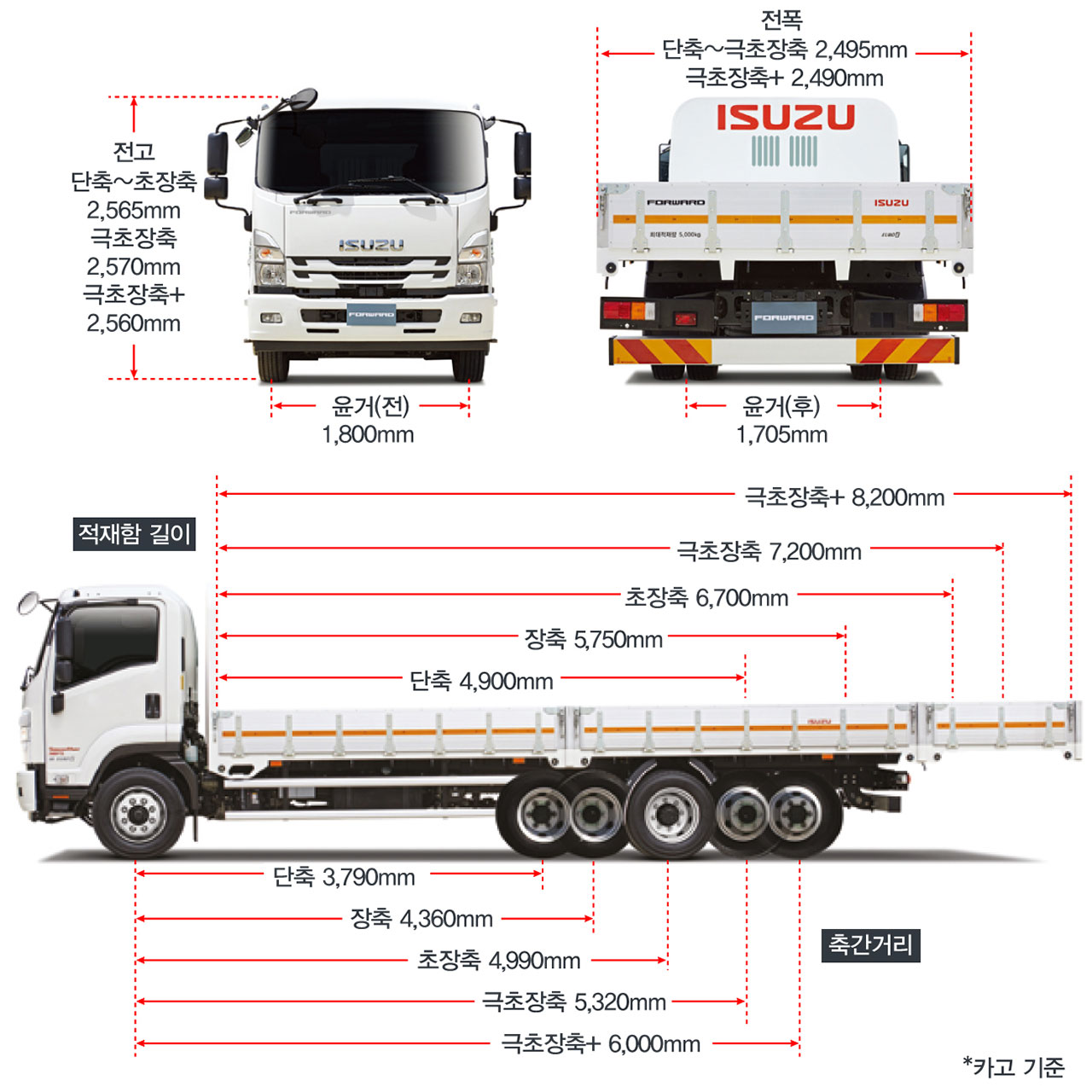 적재함(mm) 4,900 5,750 6,700 7,200 8,200 4,000 7,480 8,080